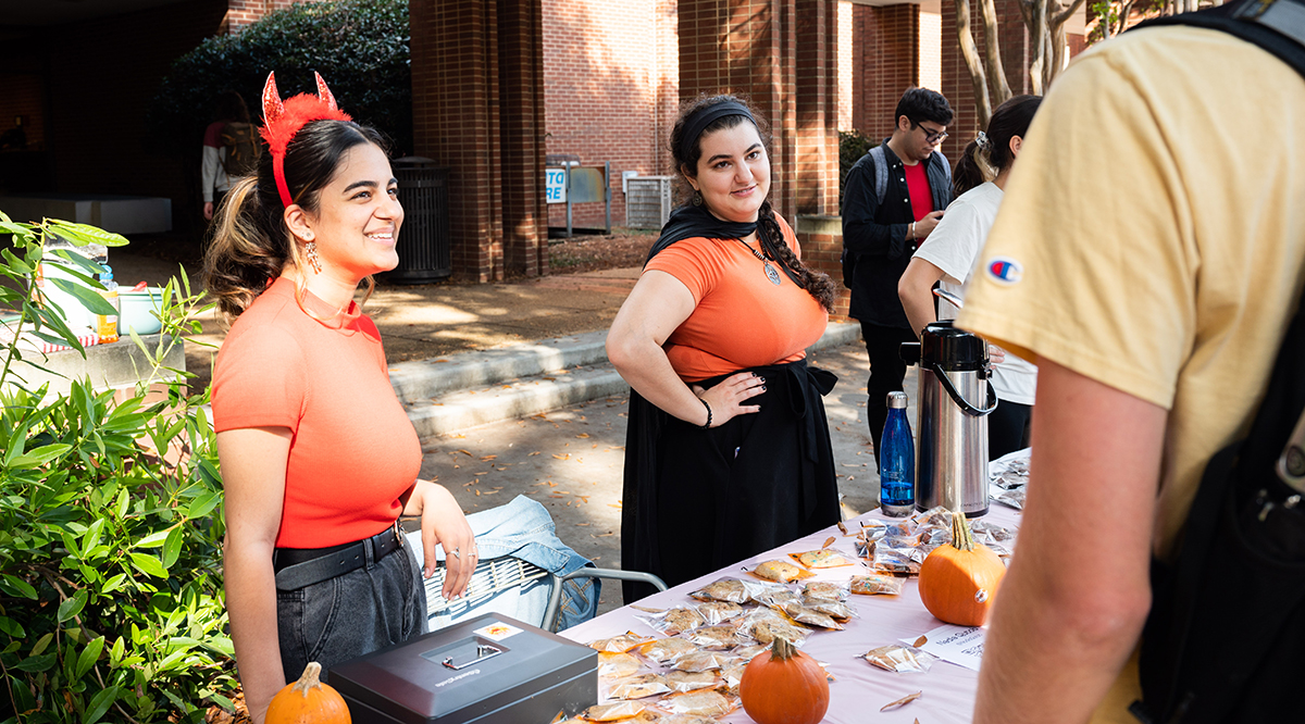 A snapshot from the 2022 Society of Physics Students Pumpkin Drop and Society of Women In Physics Bake Sale, held around Halloween of each year.